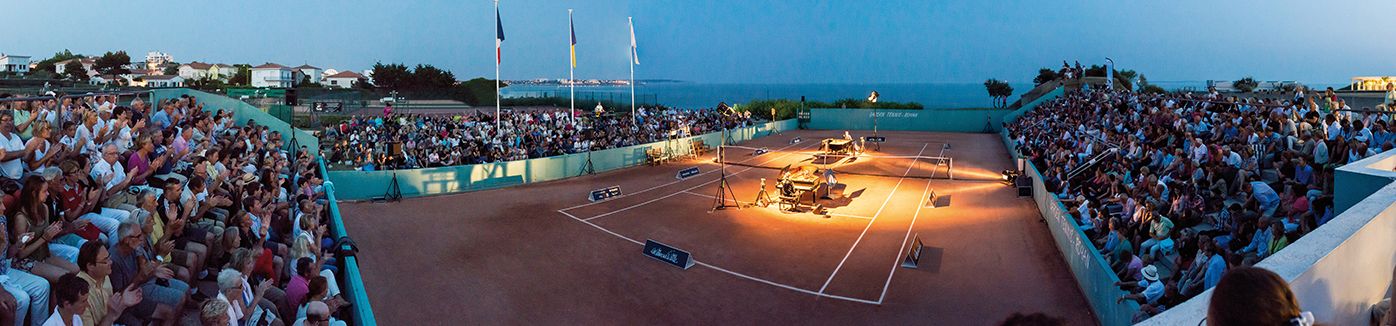 • L’insolite duel de pianos "À chacun son court ", sur le court central en terre battue du Garden Tennis de Royan, face à la mer. Chaque année, deux pianistes s’affrontent à coups de notes de musique improvisées...